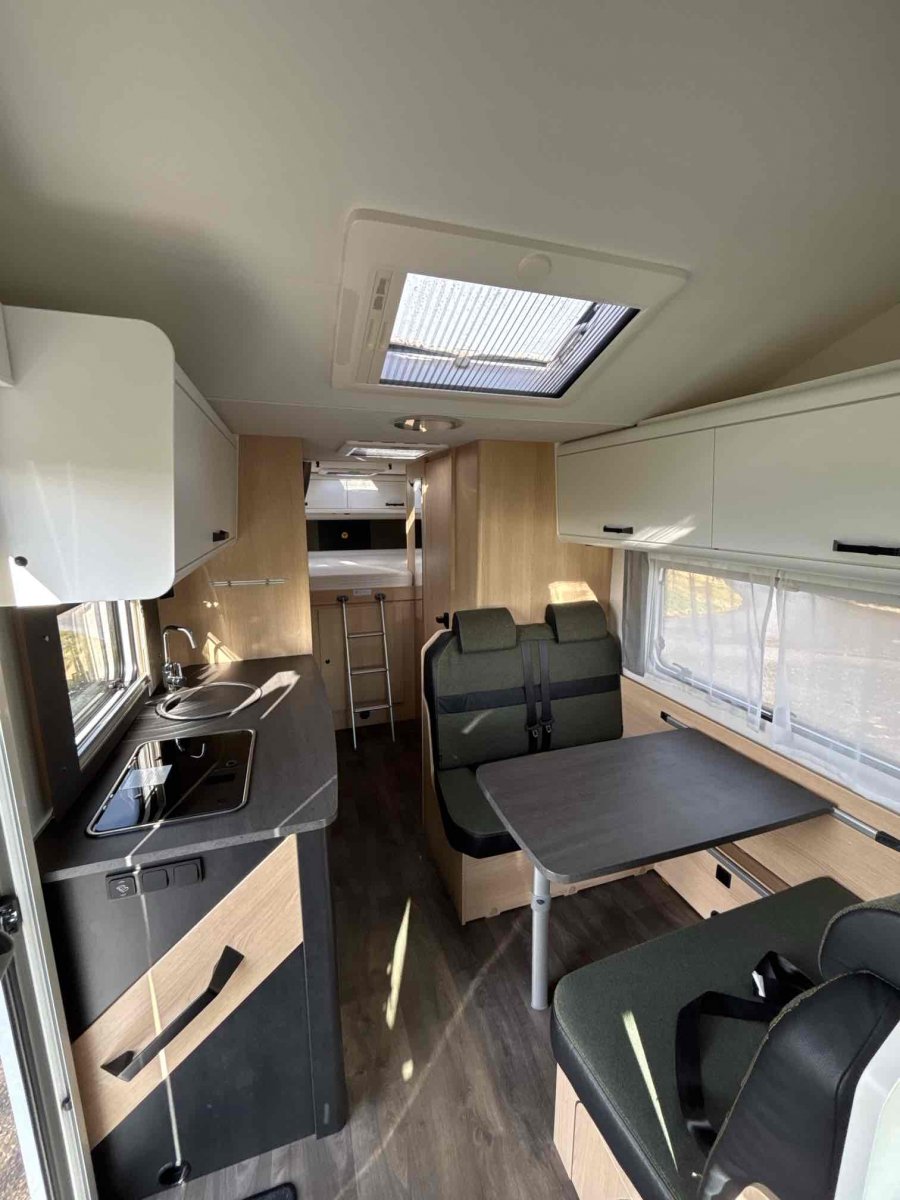 Am Abholtag erhalten Sie eine persönliche Einweisung in das Fahrzeug: Technik, Bedienung, Hundebox, Zubehör. Das Wohnmobil ist startklar vorbereitet – gefüllter Frischwassertank, Gasflasche, bezogene Betten.